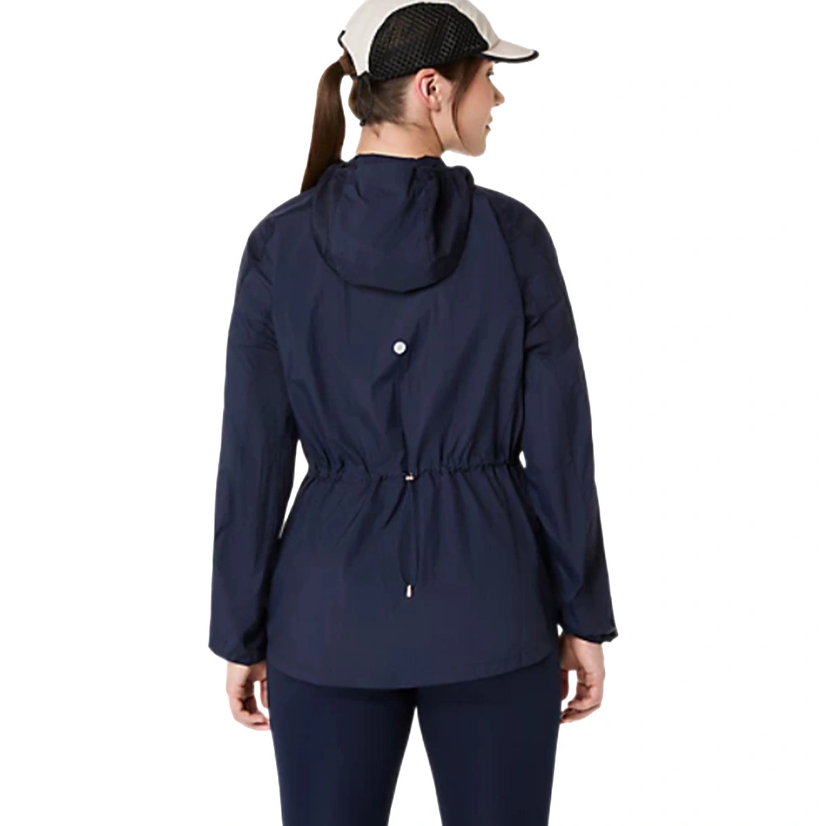 - It also features an adjustable drawstring on the hood to prevent it from blowing off during your run.