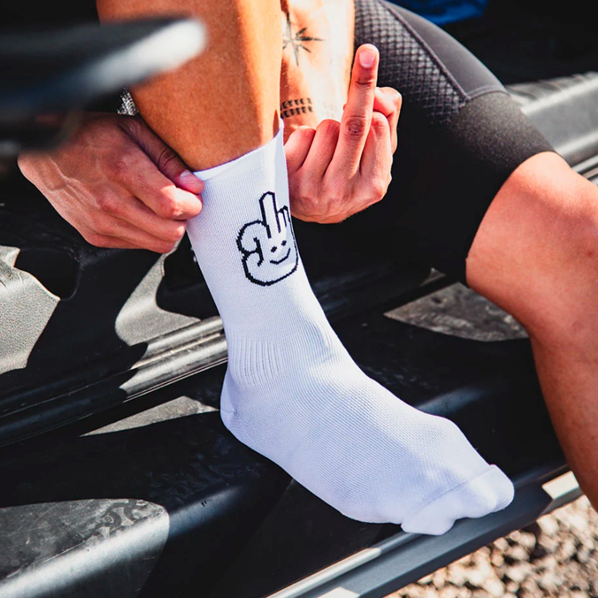 Chaussettes mi-hautes haute performance, avec un ajustement seconde peau et une compression progressive. Renfort au talon, à la pointe et au métatarse pour offrir un meilleur maintien et une plus grande durabilité lors des entraînements intensifs. Parfaites pour des températures moyennes/basses. À l'arrière, design avec le message Catch Me If You Can + icône amusante.